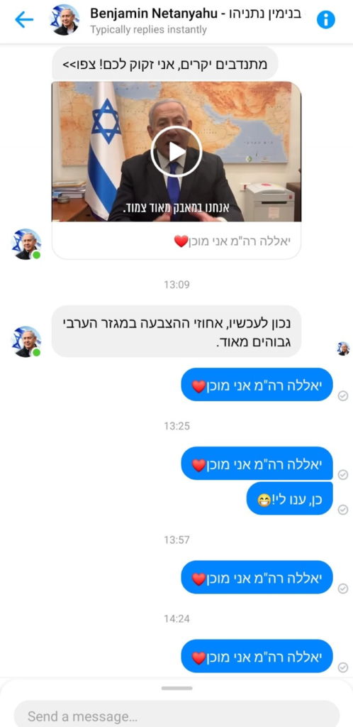 1) Chatbots and live broadcasts are effective tools for the Likud’s “win first, damage control later” campaign strategy. Even after the first 24 hours suspension, the operators of the chatbot were not deterred in using it as they saw fit, regardless of the law.